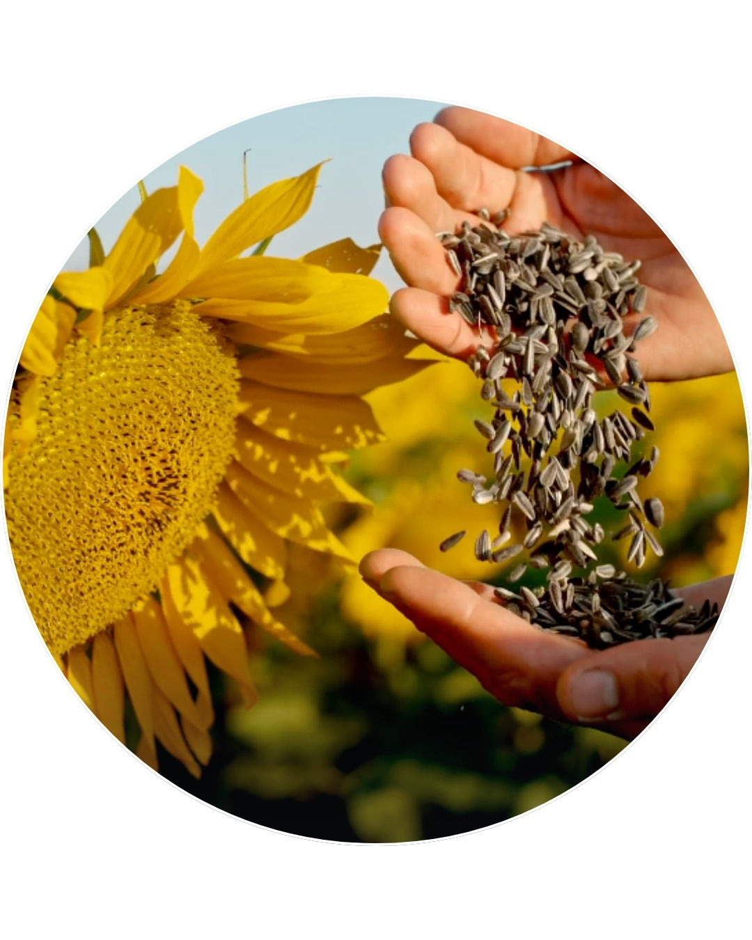 Oil is extracted from sunflower seeds — what’s left behind is called sunflower cake.